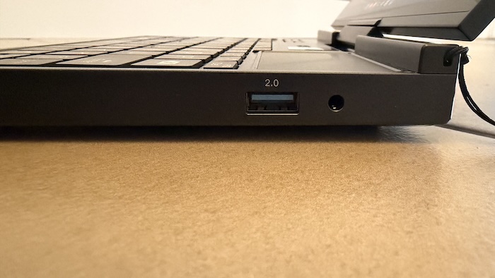 On the right, you'll find a USB 2.0 Type-A port and a 3.5mm headset jack.