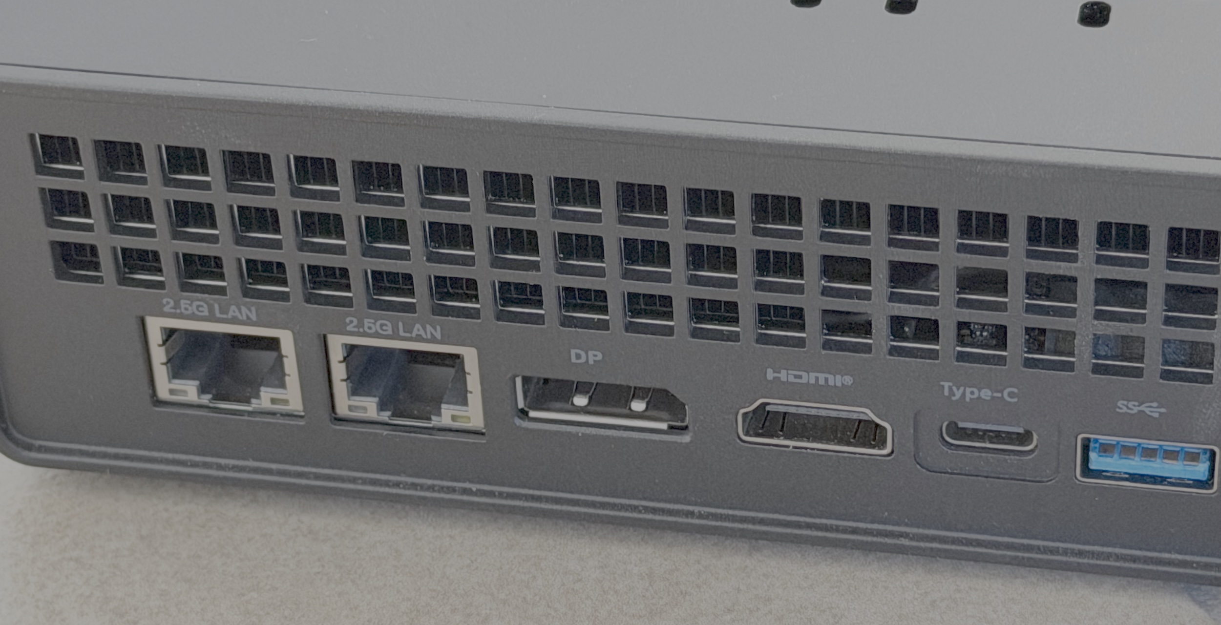 Next, let's take a look at this device's networking capabilities. Given its two 2.5Gbe ports, 5Gbps networking capabilities can be achieved using connection aggregation. The Intel MS-01 features two SPF+ connectors, allowing for 10Gbps networking per port and 20Gbps of aggregated bandwidth; however, 5Gbps will be more than enough for most users. I recently upgraded my network to 2.5Gbe on switches with a 10Gbps backbone because my new 1.6Gbps broadband package saturated the 1Gbe network I had before. This will soon become the norm.