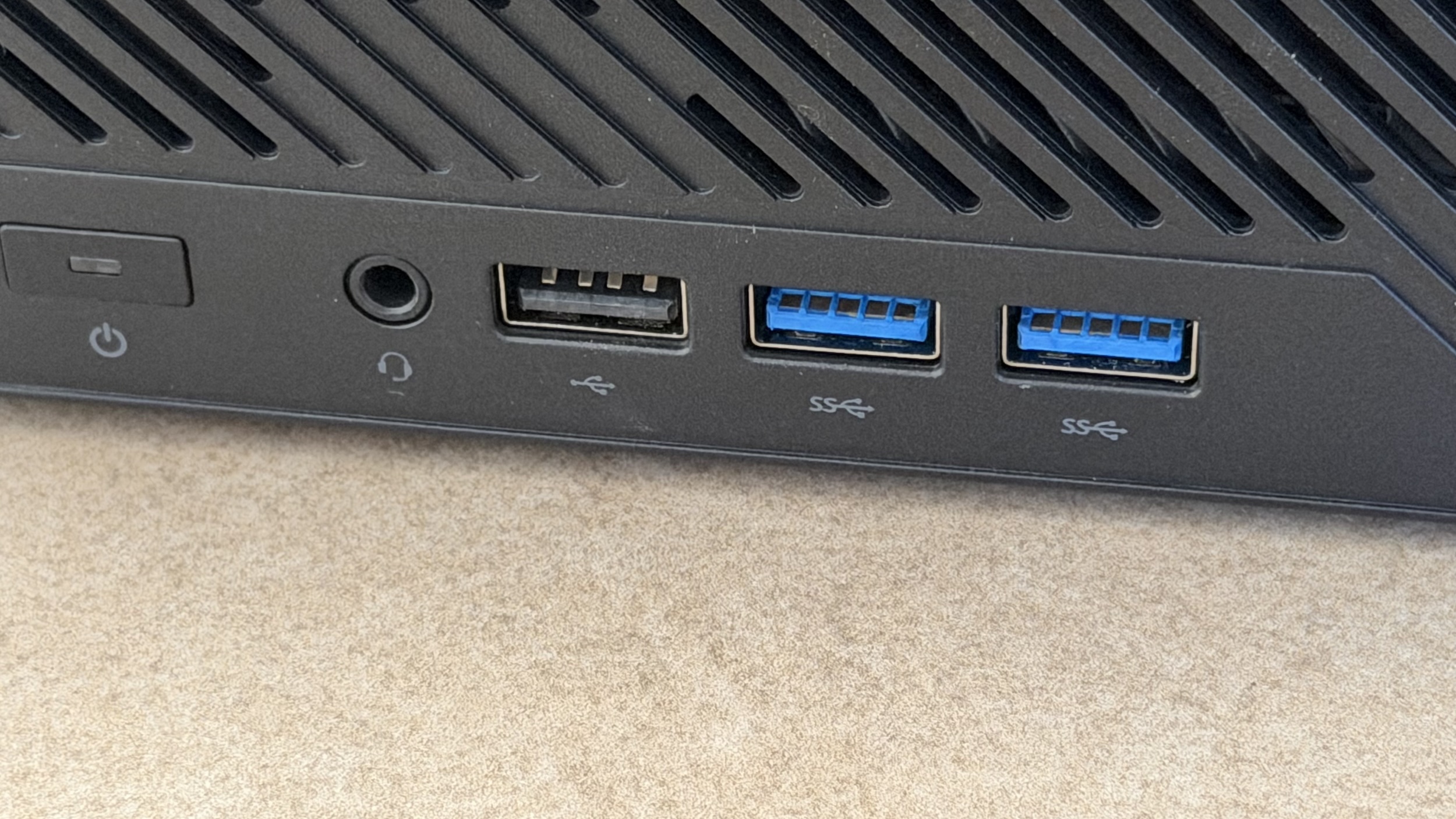 On the front of the device are 2 USB 3.2 10Gbps ports and a single USB 2.0 port. There's also a 3.5mm headset jack.