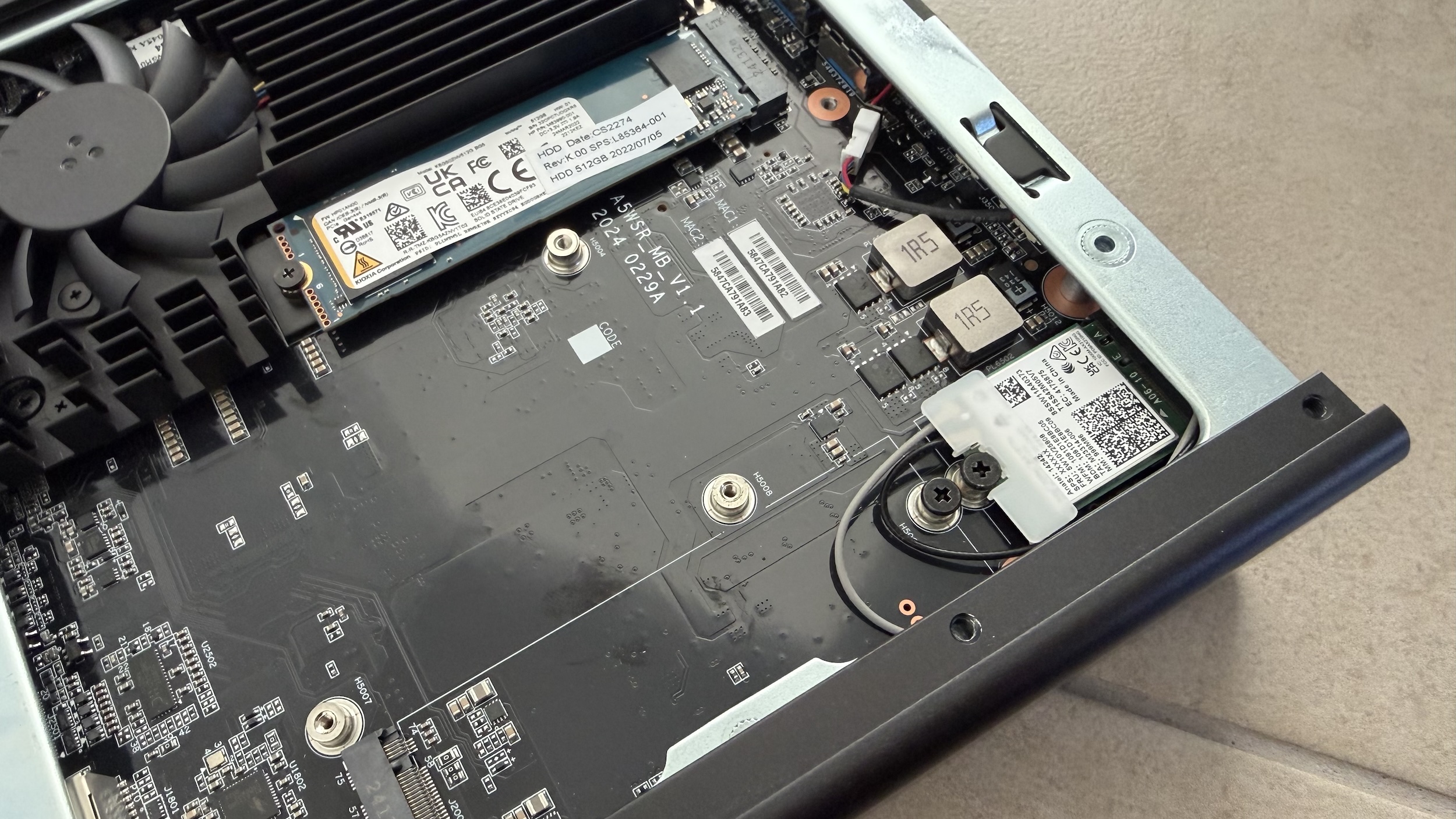 The MS-A1 also supports a U2 drive. In this picture you can also see the wireless card and two NVMe slots (one populated)