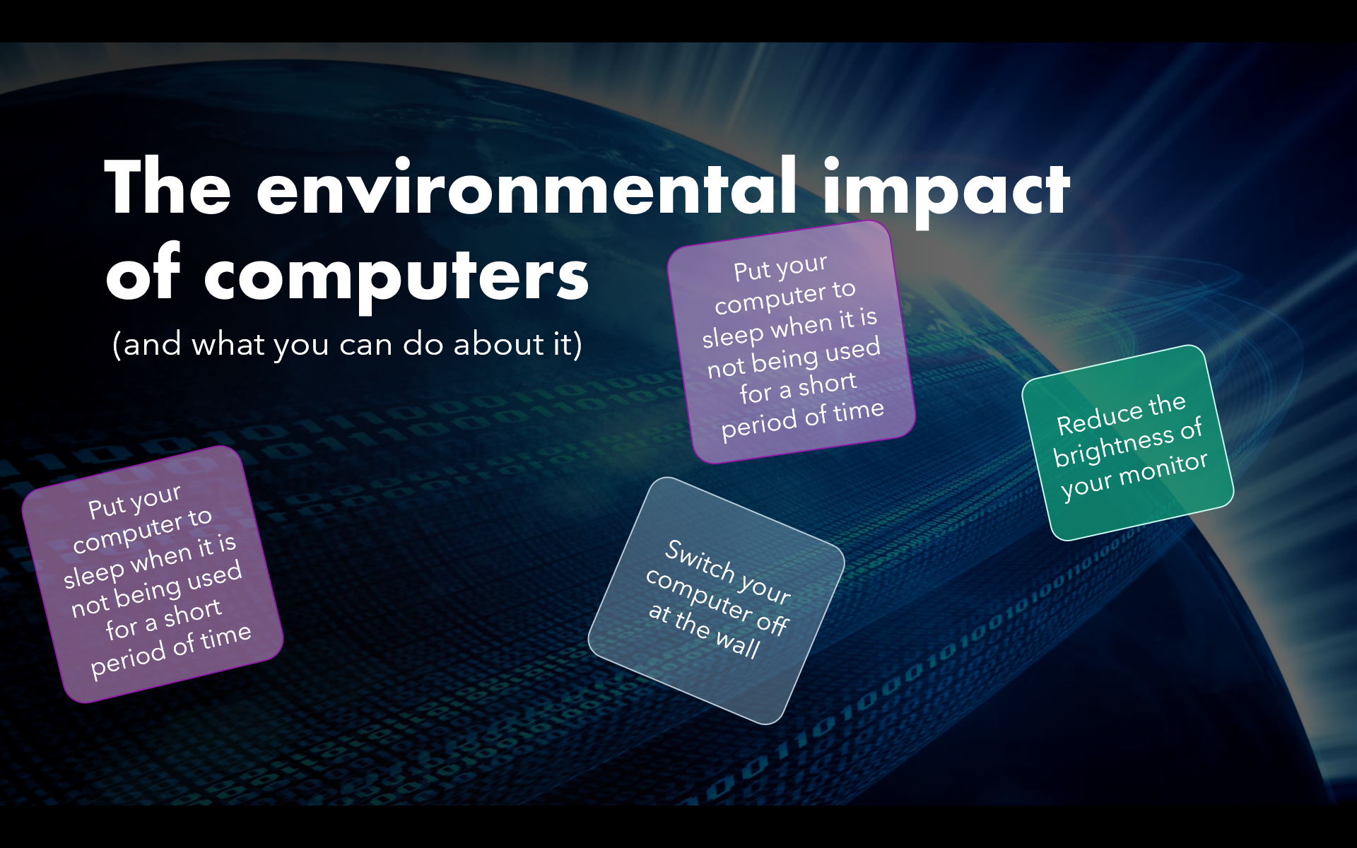 When you finish that, make your own single slide presentation about how to reduce the environmental impact of computers.