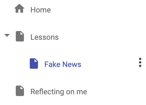 On your website create a section called Lessons. Under it create a page called a subpage called Fake News. Choose an appropriate picture and put it at the top of the section.