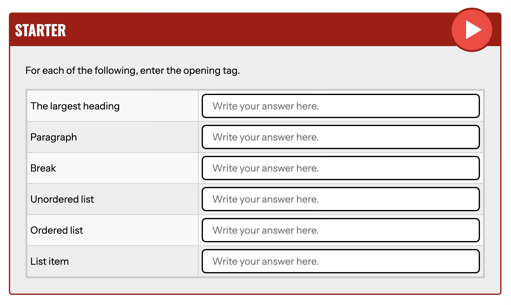 • If you feel you are struggling you can try the drag and drop editor at clickit.education.