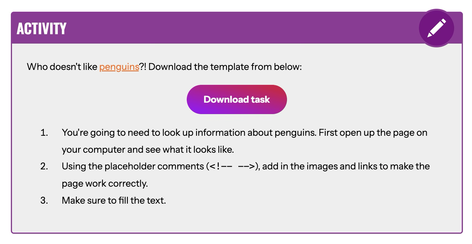 • You'll be using HTML to do this.