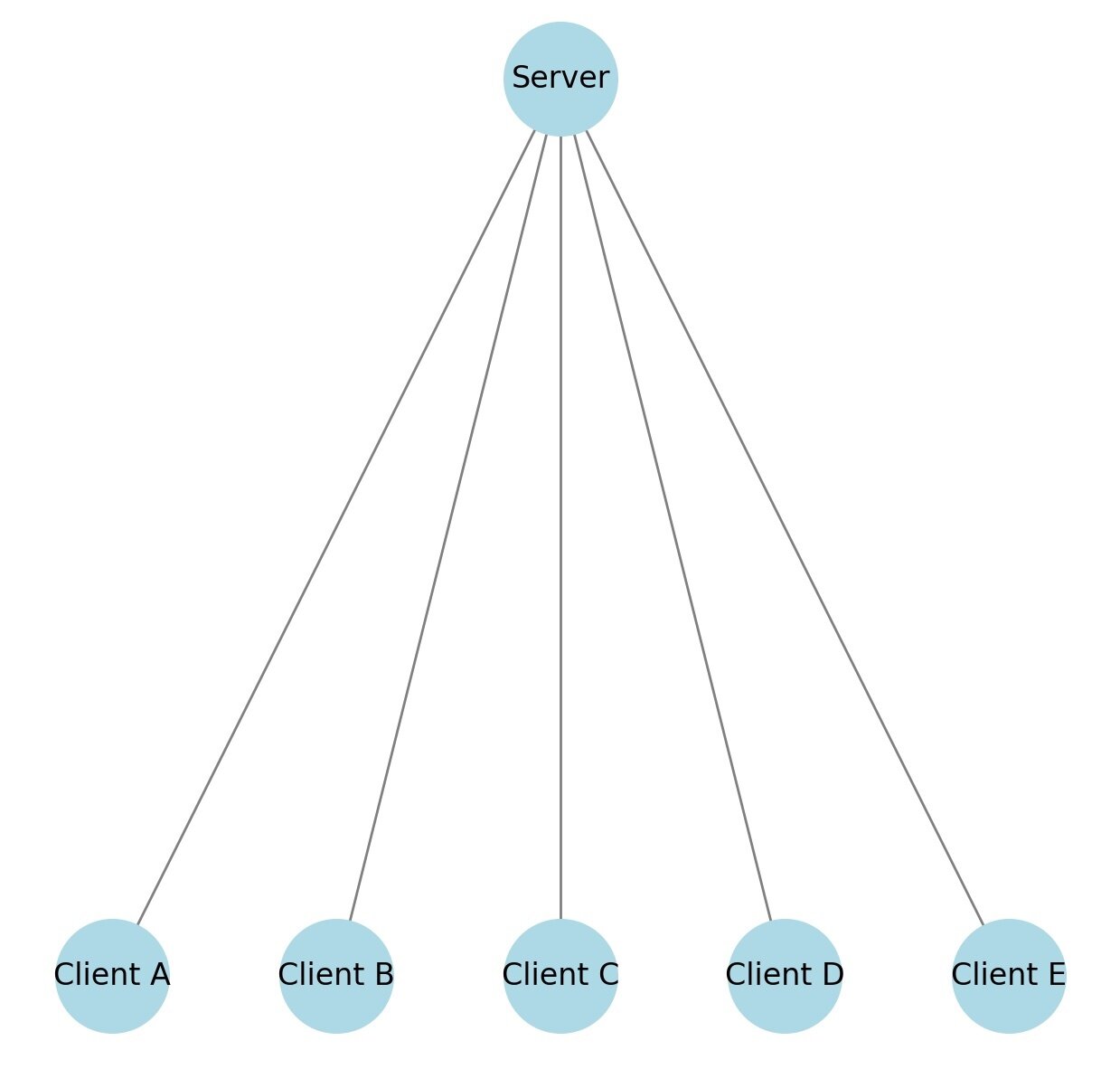 • At the centre of a client-server network is a server that is responsible for allocation of resources and all nodes connect to it.