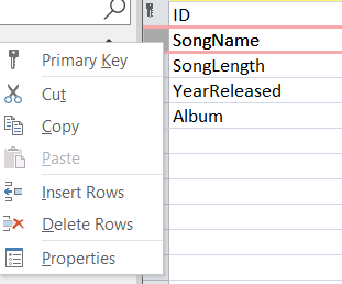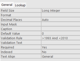 Note - Number data types cannot have a field size - they are determined based on their data type (e.g. Integer or Double)