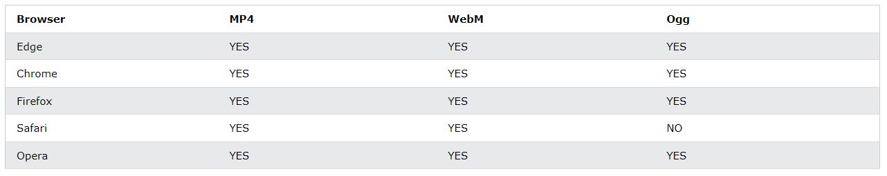 • If a video doesn't display on a website, you need to ensure that the format is supported by the browser.