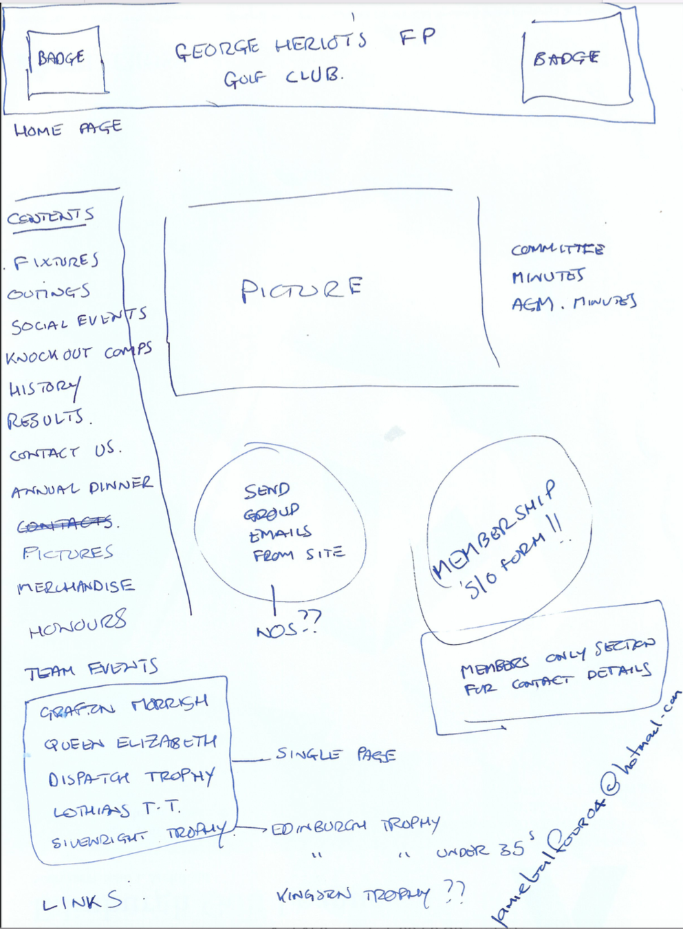 • A wireframe for the website heriotsfpgolfclub.co.uk is shown