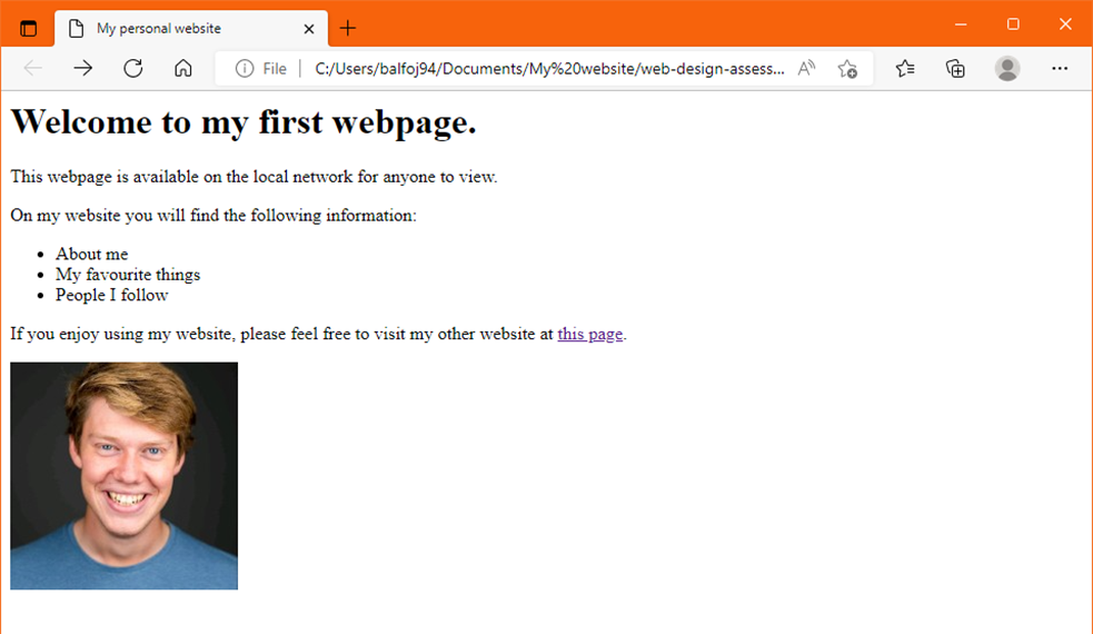 Work through the HTML workbook from task 1 onwards using what you have seen in this lesson.