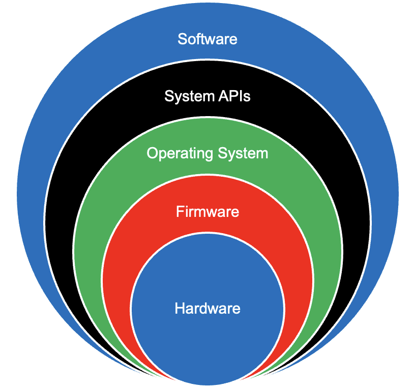• In terms of video games, they sit in the software layer of this onion model. For the software to be able to manipulate the computer (for example draw a character on screen) the software must communicate through a collection of system APIs.